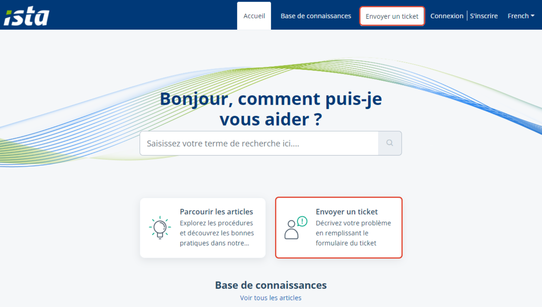 Chaque client peut nous contacter via le helpdesk. Pour soumettre une demande, vous devez cliquer sur le bouton 'Envoyer un ticket' :